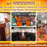 About UsArulmigu Adhiparasakthi, has manifested through his Holiness Arulthiru Bangaru Adigalar – “AMMA”, who has been steadily building up spirituality and infusing into young minds – the need for service and global harmony. ‘ARULTHIRU AMMA’ has steadfastedly advocated Educational up liftmen as part of service to the humanity and “AMMA” is the founder president of Adhiparasakthi Matriculation Higher secondary school. As ordered by ‘AMMA’ in the oracle, the Adhiparasakthi Charitable, Medical, Educational and Cultural Trust established Adhiparasakthi Matriculation School in 1985. It was upgraded to Higher Secondary School in the year 1991.In its continuous service to the society, it obtains its permanent recognition from the board of authorities in the academic year 1999-2000. The School has been certified ISO 9001:2015 for the quality education provided.