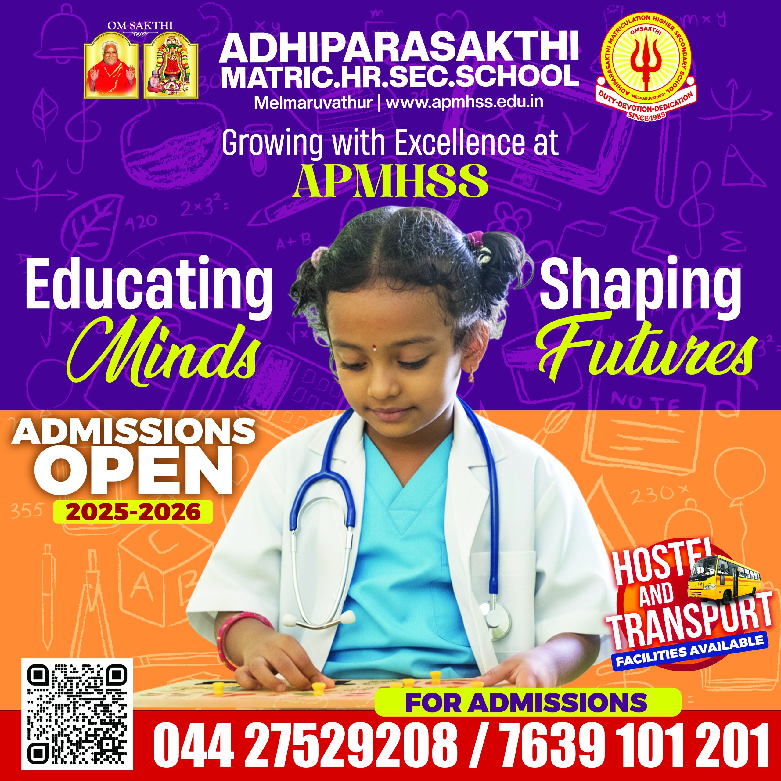 ADHIPARASAKTHI MATRICULATION HIGHER SECONDARY SCHOOL, GST Road, Melmaruvathur. 603319.